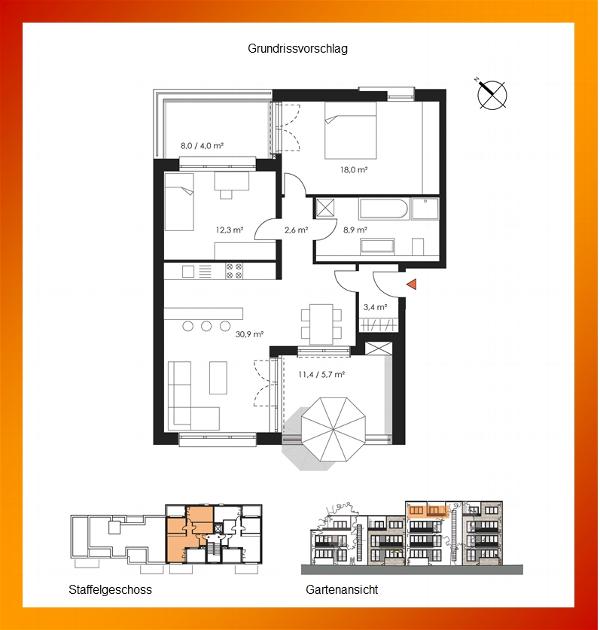 - Wohnung 12 / 3 Zimmer / 85,8 m² -