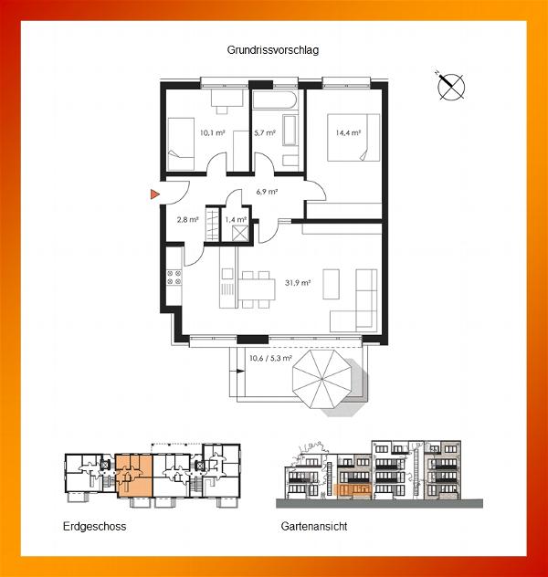 - Wohnung 2 / 3 Zimmer / 78,5 m² -